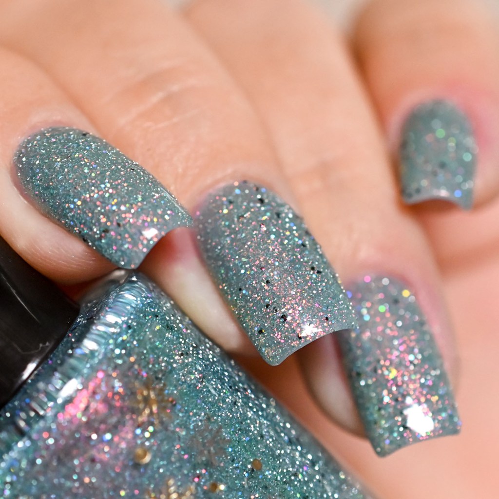 Agora vamos conhecer o Connect With Family, um teal maravilhoso! Feito com aurora verde/azul, funco preto e glitters holo prata.