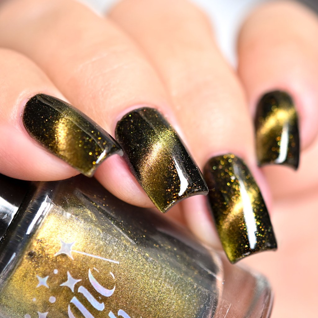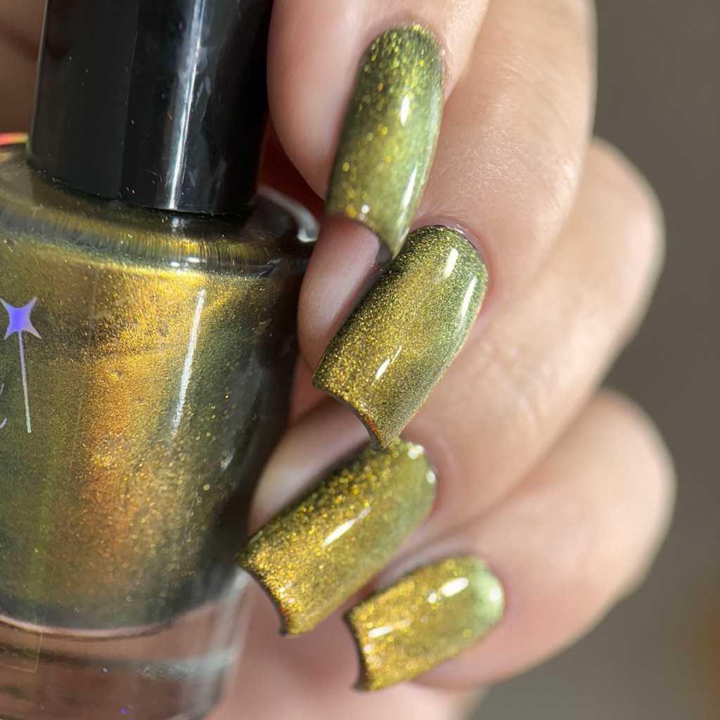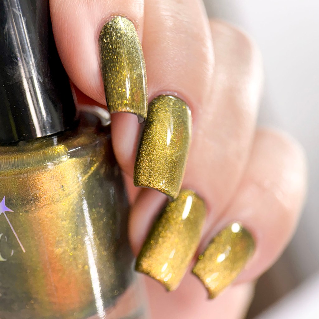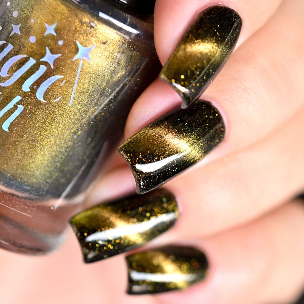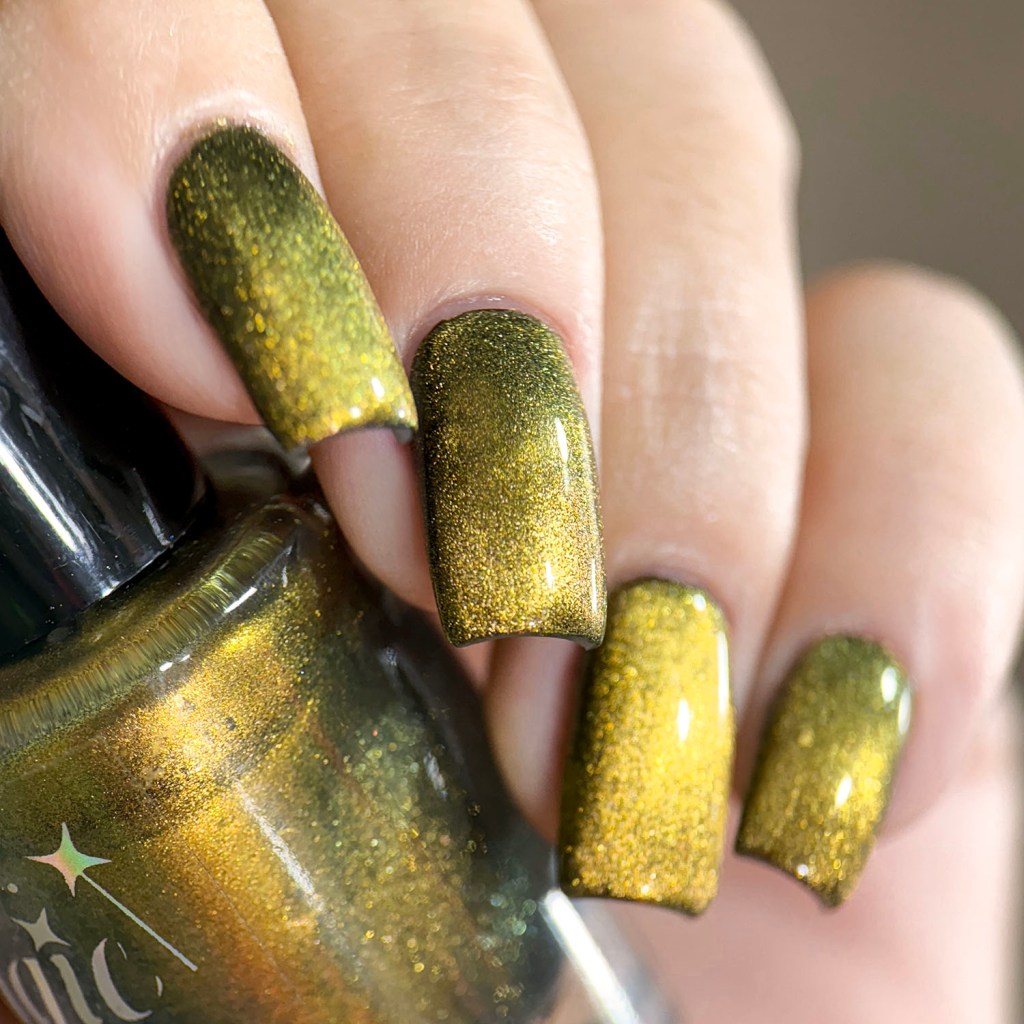 Agora vamos ao Peridot Passion, que é um magnético com tons de dourado e verde, e um pouco de micro flakes dourados.