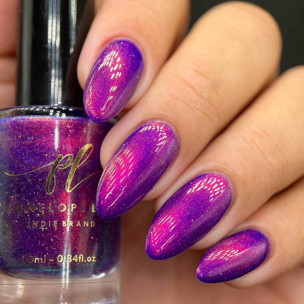 O esmalte Disco Fever foi inspirado nas febres das discotecas nos anos 70 e 80, foi quando nosso mundo começou a conhecer o brilho, os efeitos, o colorido, tudo embalado por músicas incríveis que ficaram na história. Base roxa vibrante com aurora laranja/dourado.