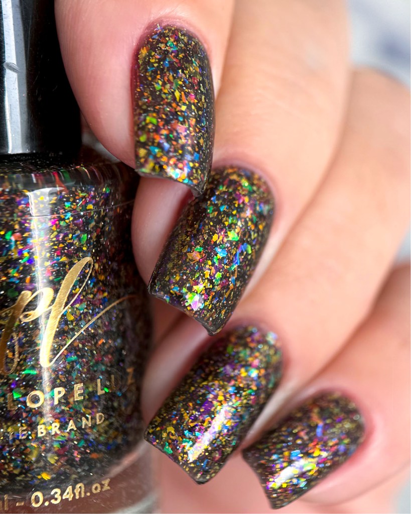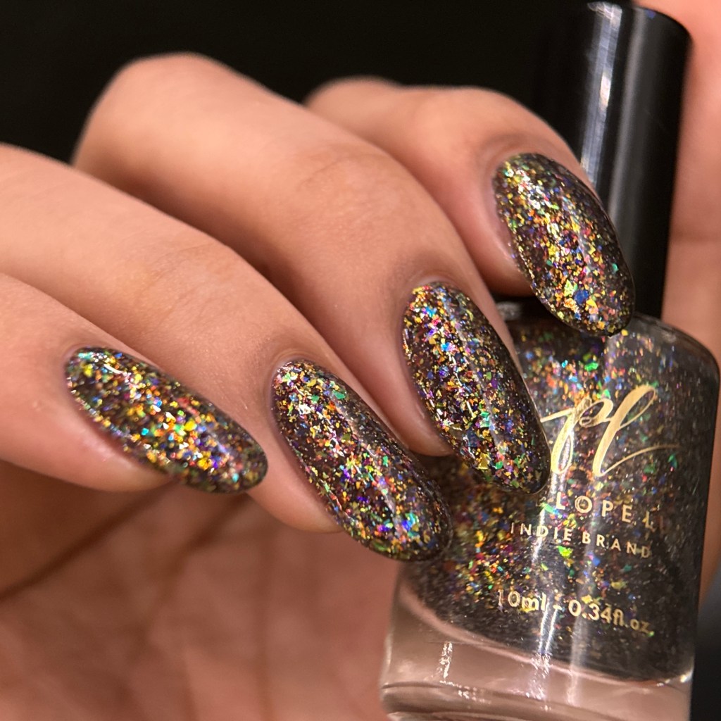 O esmalte Jukebox Joy foi inspirado na alegria e magia que as jukeboxes trazem ao ambiente, lembrando as festas dançando no escurinho, dando o primeiro beijo, ou apenas curtindo com os amigos tomando um milk shake. Base preta com flakes multicoloridos.