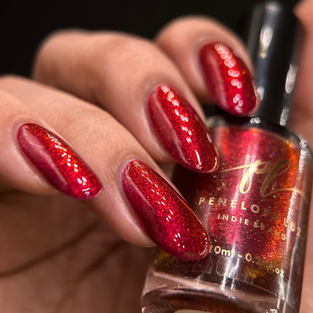 O esmalte Red Vynil foi inspirado nos discos vinil de cor vermelha, sucesso nas discotecas, muito divertido e dando um charme maravilhoso pras vitrolas! Base vermelho cereja vibrante com micro flakies rosa/vermelho/dourado.