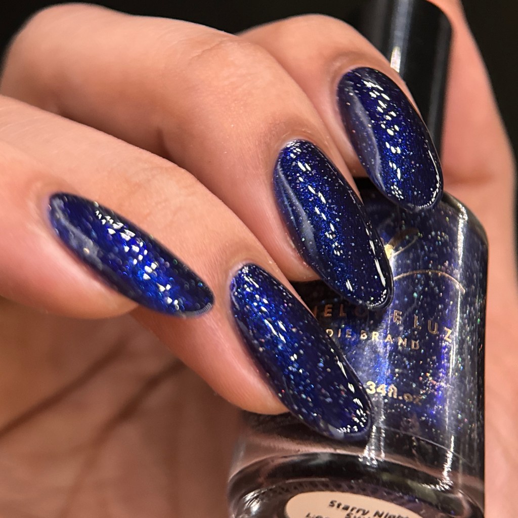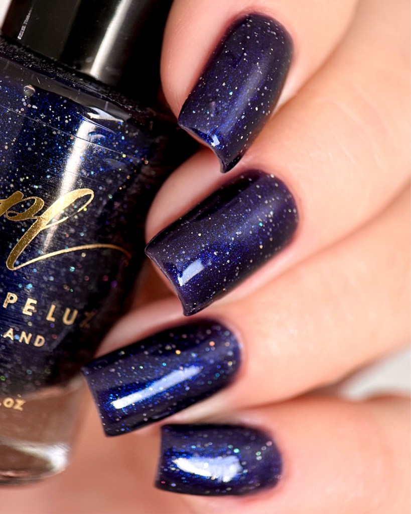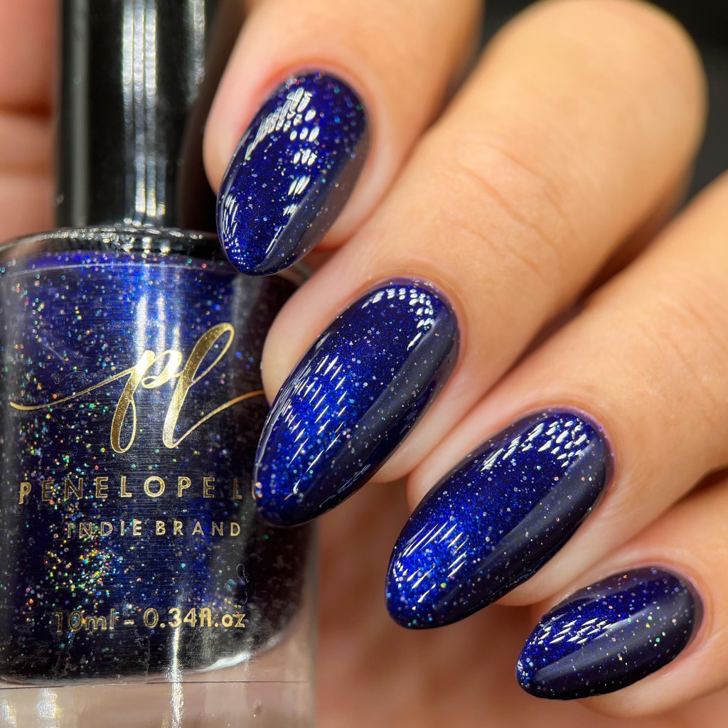 O esmalte Starry Night Swing foi inspirado nas maravilhosas festas na praia debaixo do céu estrelado onde muitos amores nasceram e muitas histórias foram construídas. Base azul marinho escuro com um pouco de aurora sparkle azul e glitter prata holo.