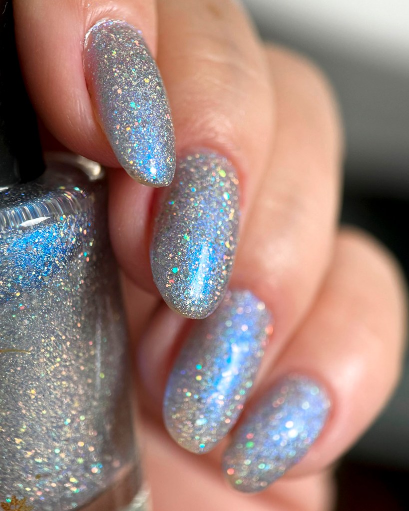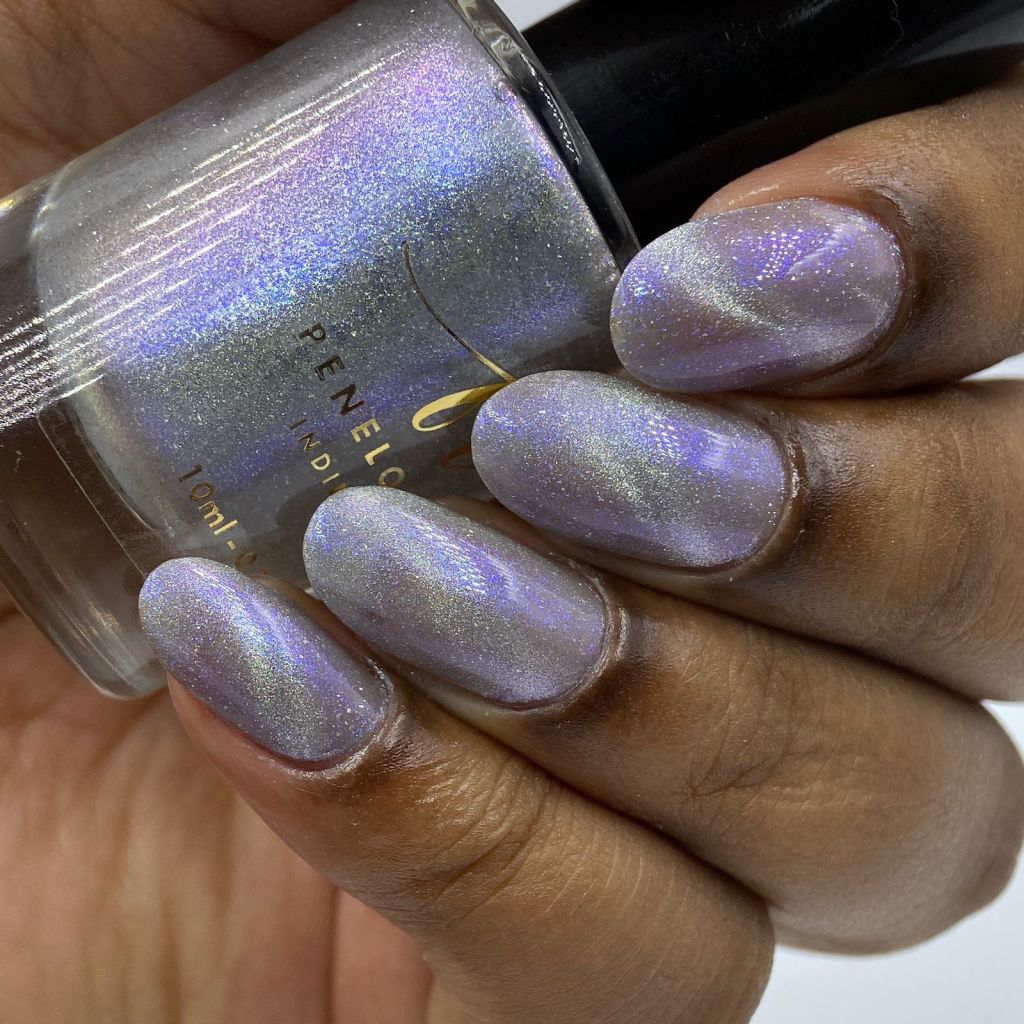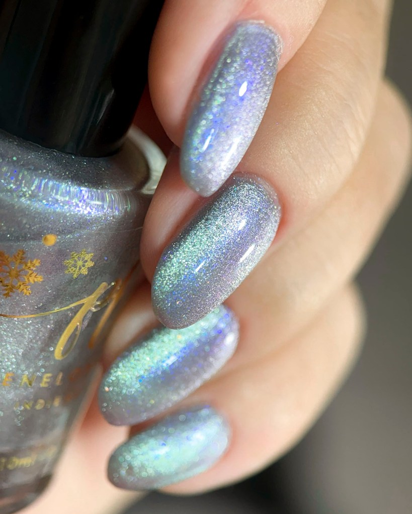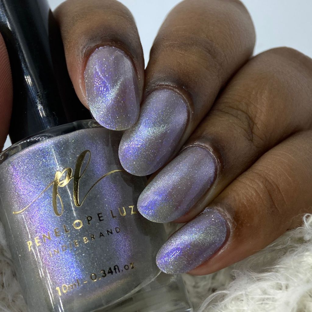 Agora vamos ao Angel’s Whisper, que é um magnético prata com fundo cinza clarinho e shimmer azul, bem delicado! Um suspiro de anjo mesmo! ❤