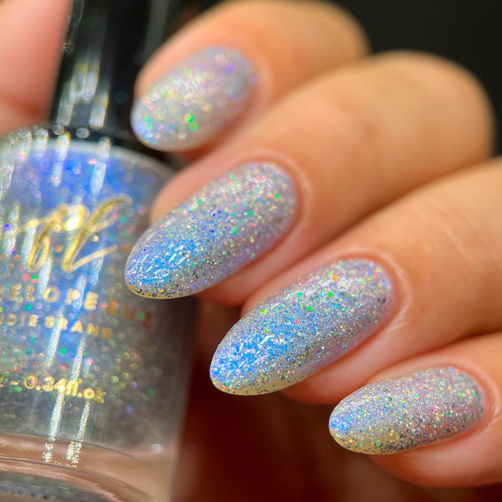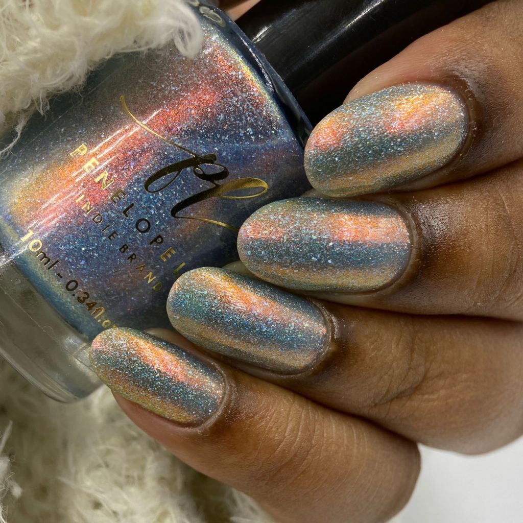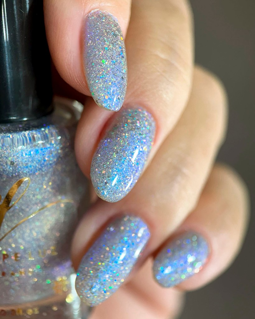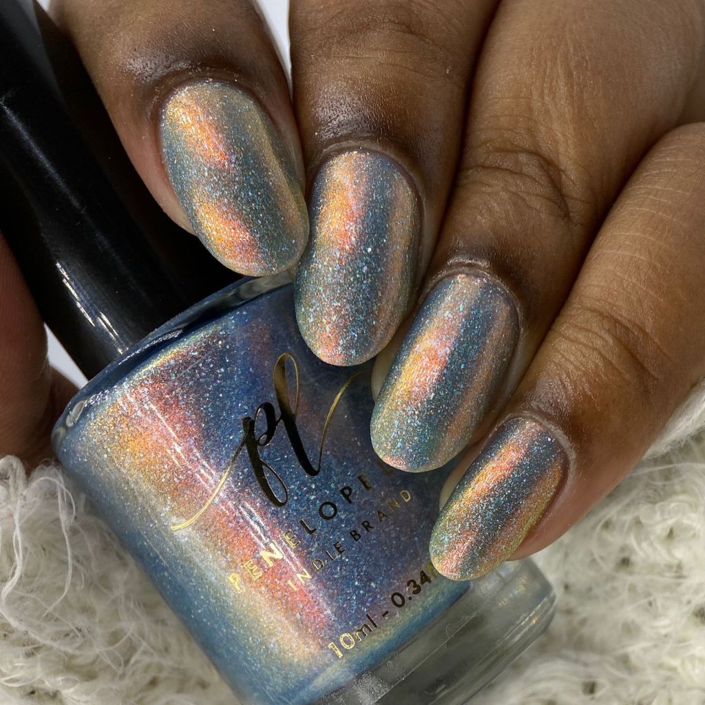 Agora vamos ao Glory Shimmer, outro que é puro escândalo, ele é um azul bebê com holo, flake holo e shimmer aurora intenso laranja/dourado.
