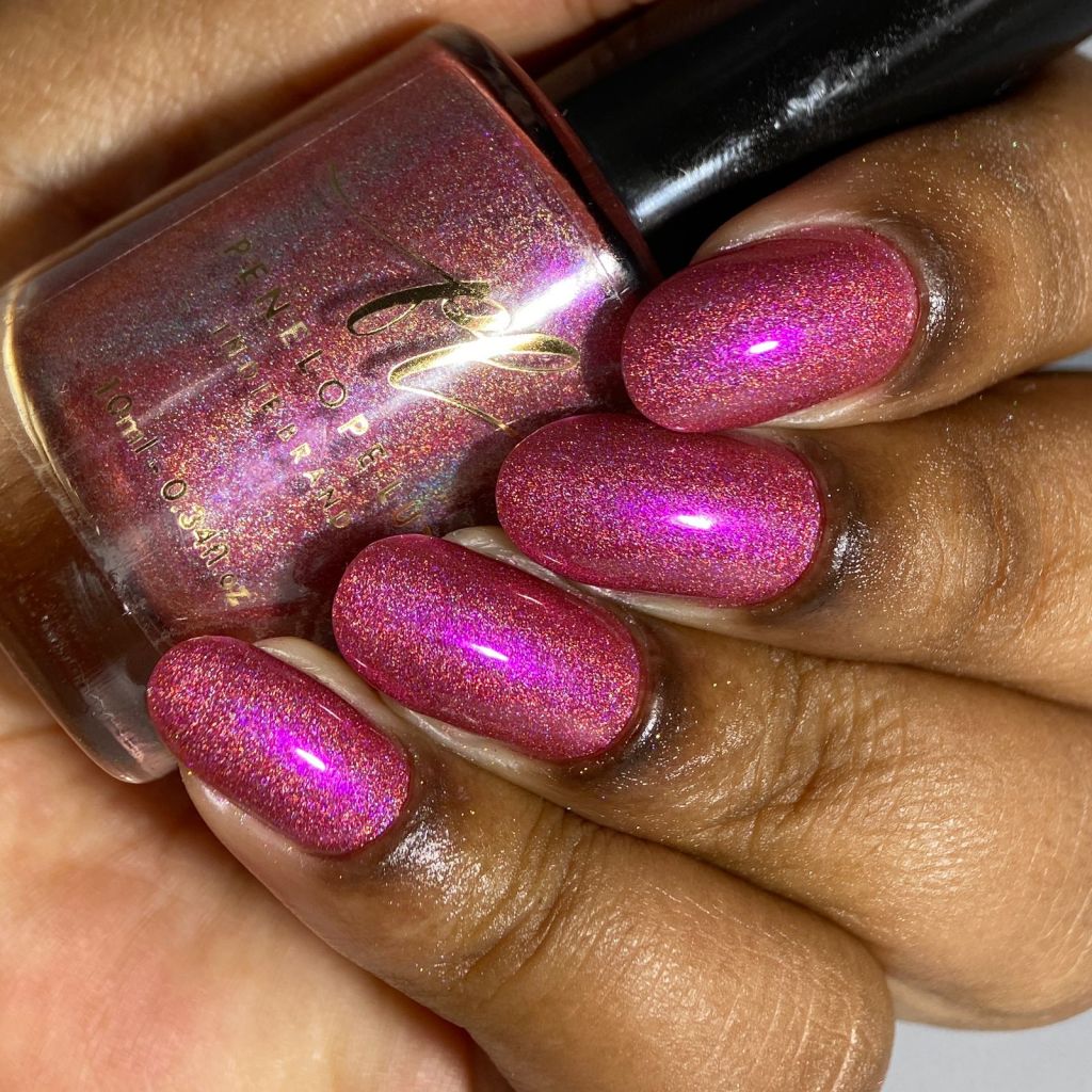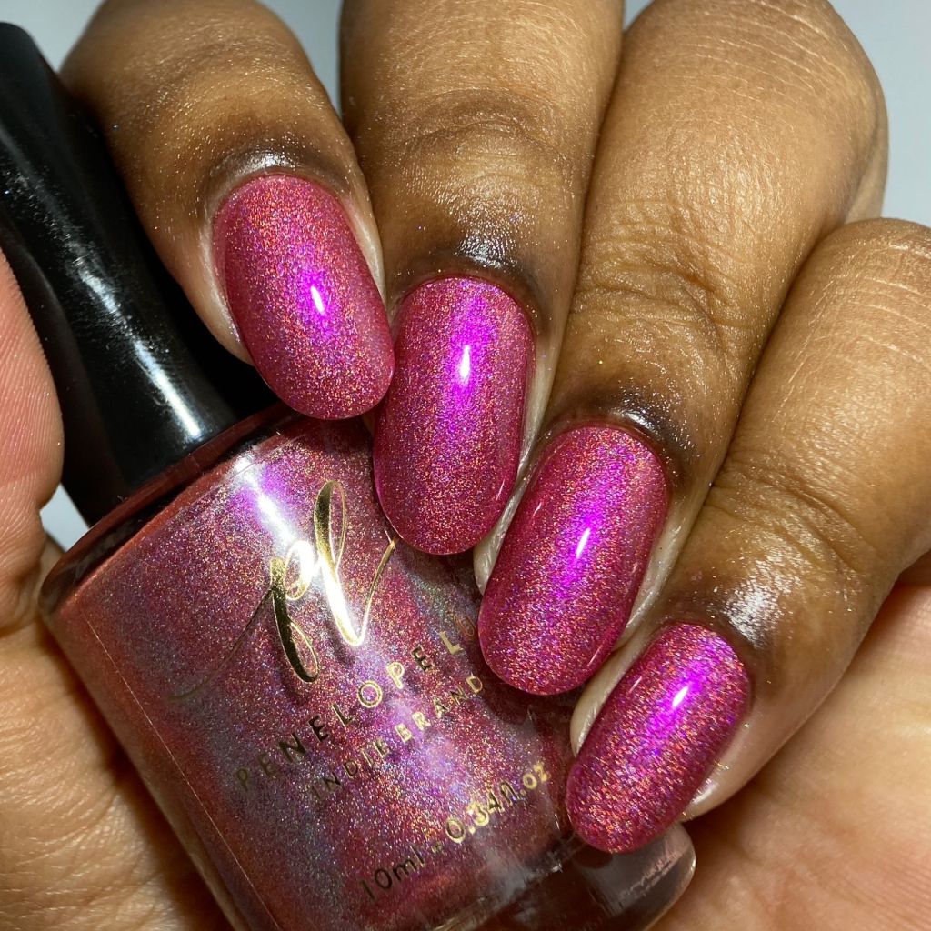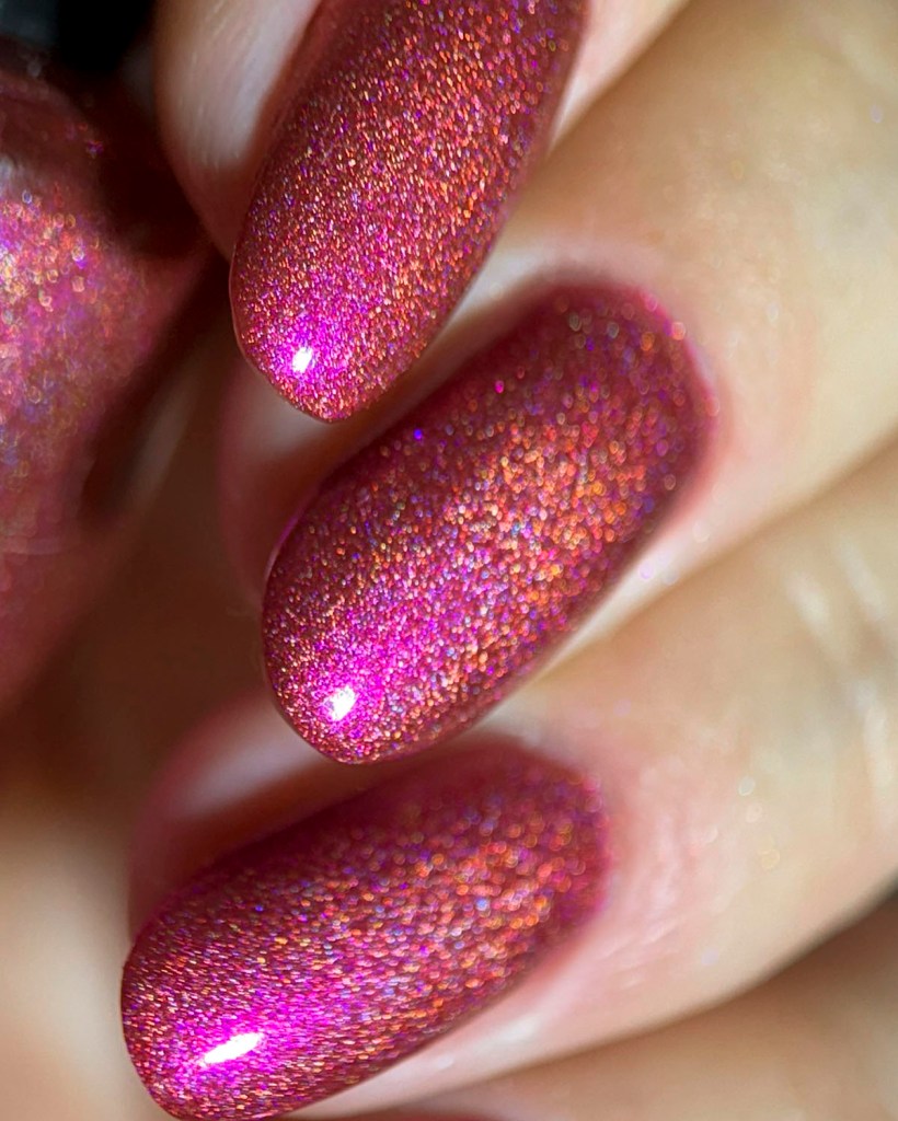 Agora vamos conhecer o Mary’s Miracle, o primeiro vermelho da coleção, ele é um vermelho aberto holográfico e tem shimmr roxo, então fica com a impressão de ser um vermelho cerejinha bem fofo!