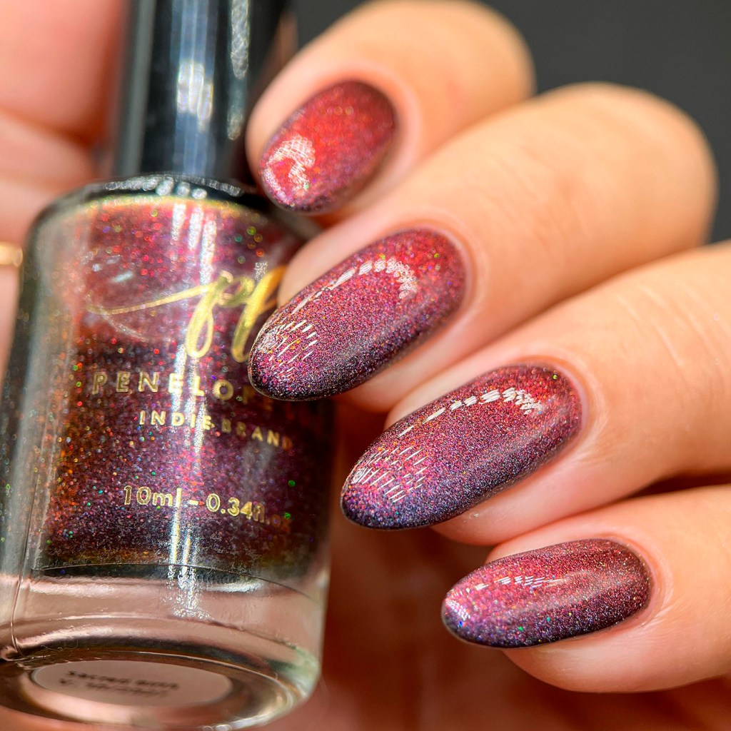 Por fim o terceiro vermelho da coleção, o Sacred Birth, um magético escândalo que vai do prata pro vermelho, com um tom meio diferente, e tem micro flakes vermelho no fundo só para dar profundidade! Lindo!