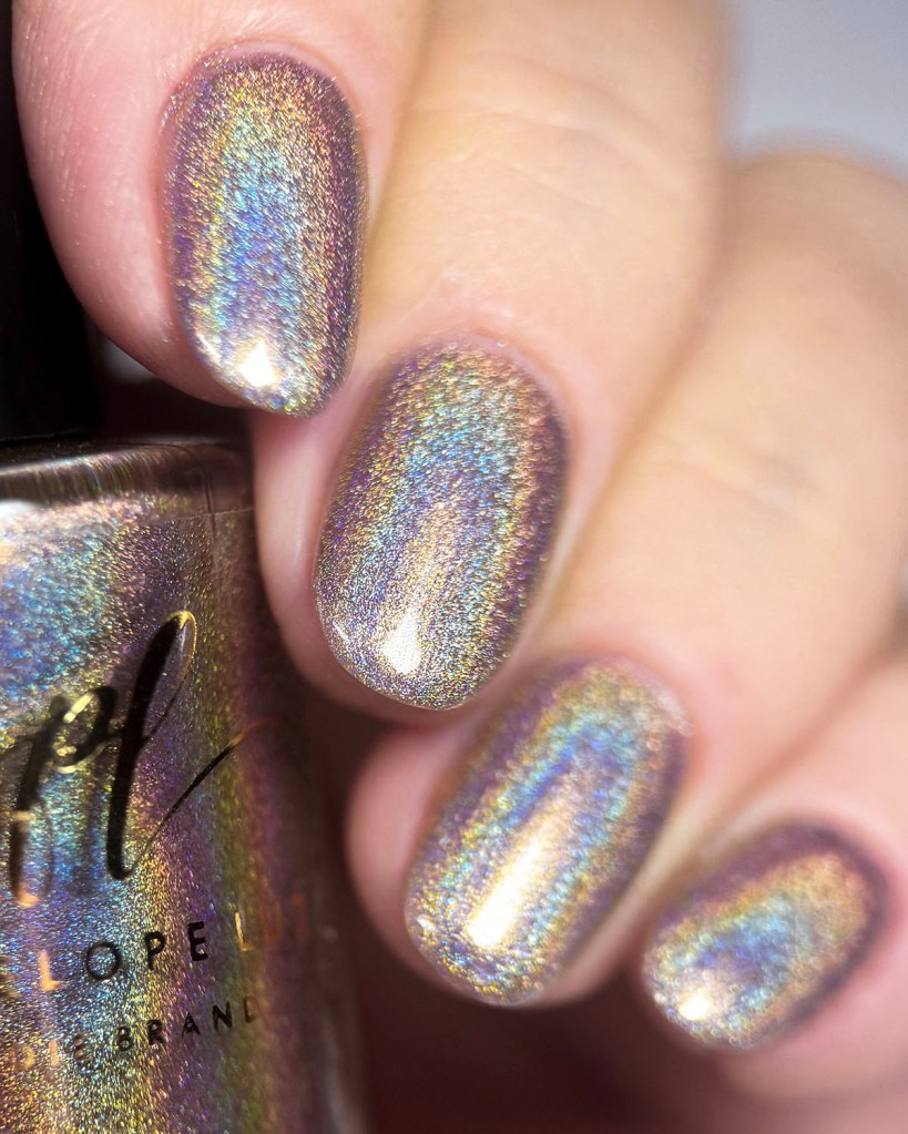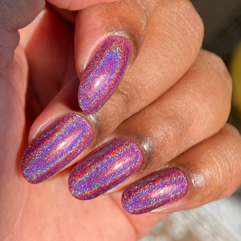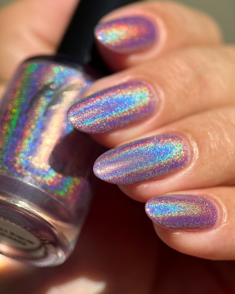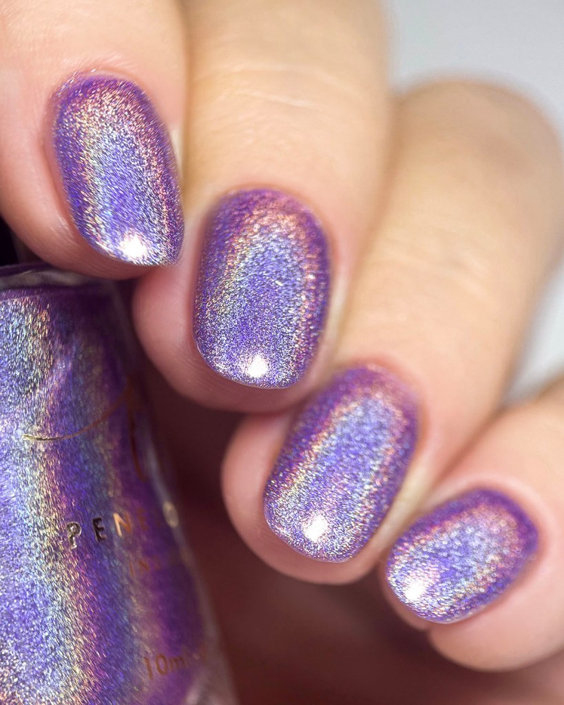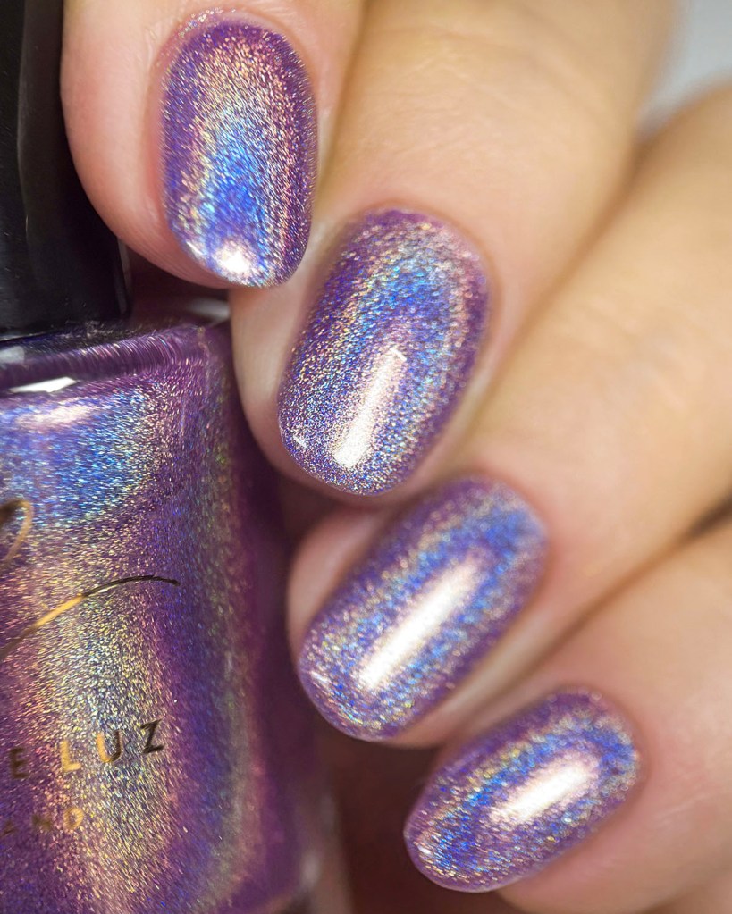 Agora vamos ao Elysian Dreams, holográfico lilás com intenso prisma, inspirado nos sonhos paradisíacos que temos quando dormimos com a alma cheia de paz.