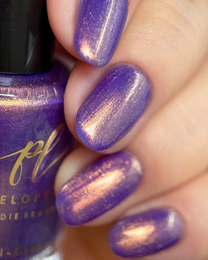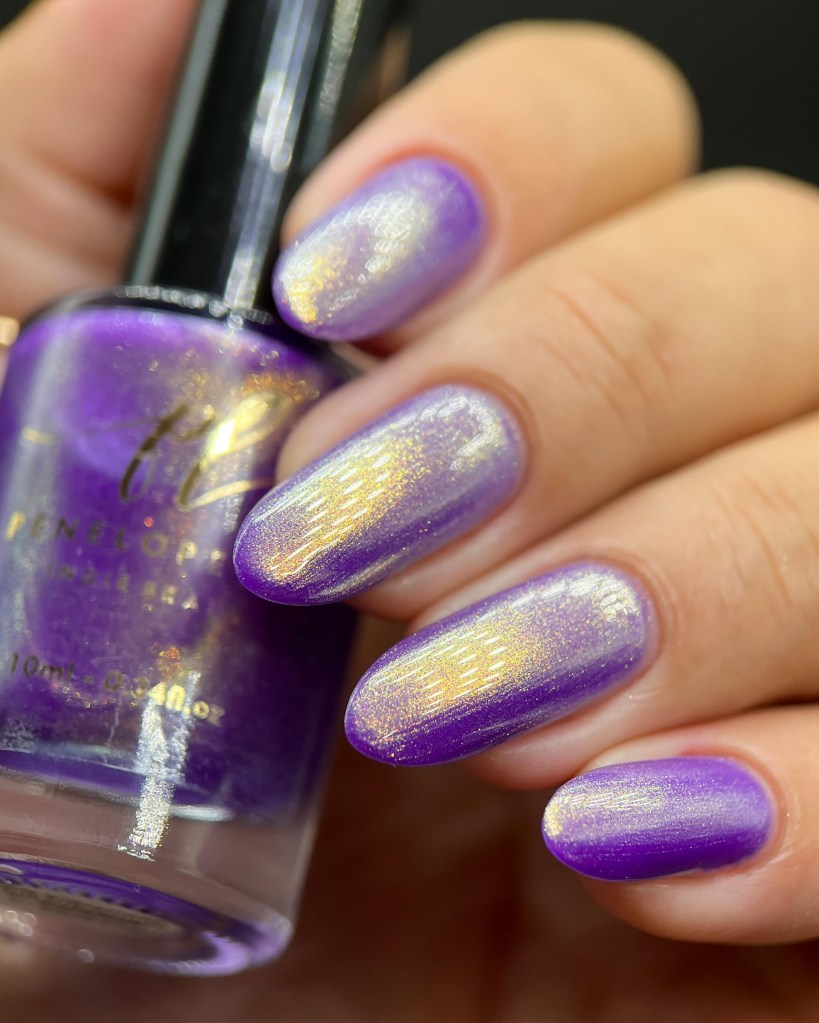 Agora vamos ao Om Vibrations, lilás com intenso shimmer dourado alaranjado, inspirado no mantra OM utilizado há milênios para meditação e autoconhecimento.