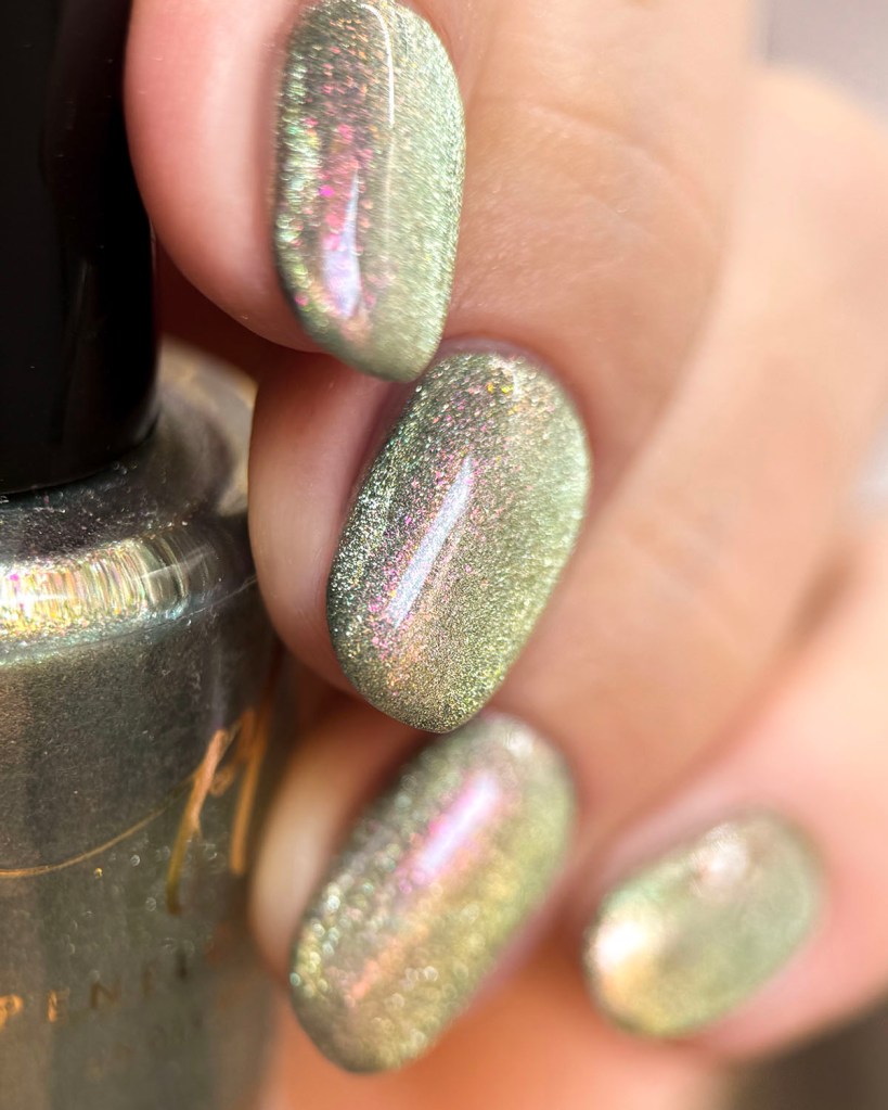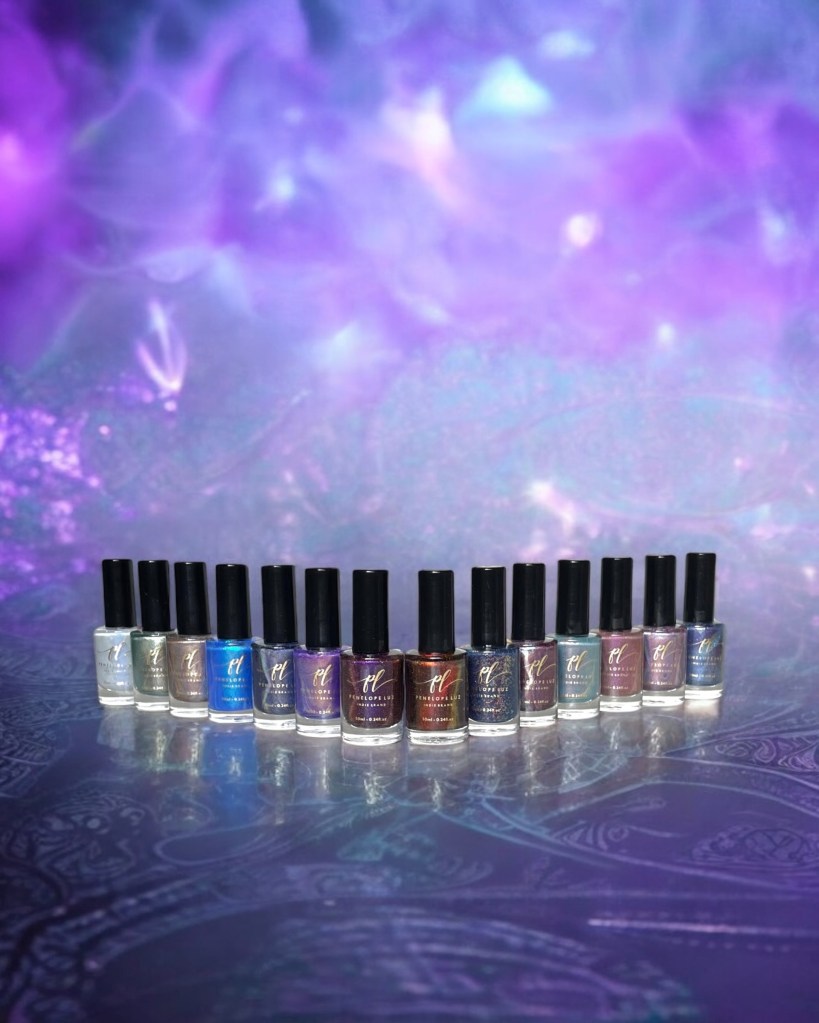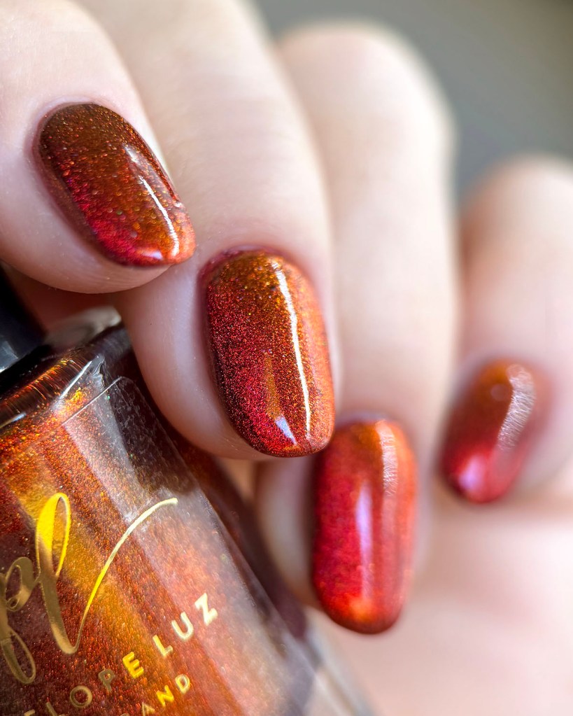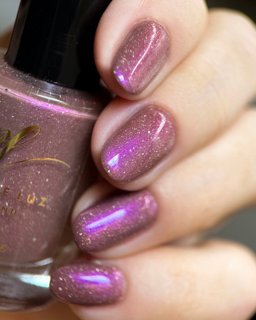 Comecemos conhecendo o Awaken, marrom claro com shimmer roxo/vermelho, pigmento holo e flake holo, inspirado no despertar da alma, quando entendemos que somos seres espirituais e que temos todos a missão de sermos melhor, evoluir, ajudar o outro, buscarmos sobretudo o autoconhecimento para encontrarmos a verdadeira felicidade.