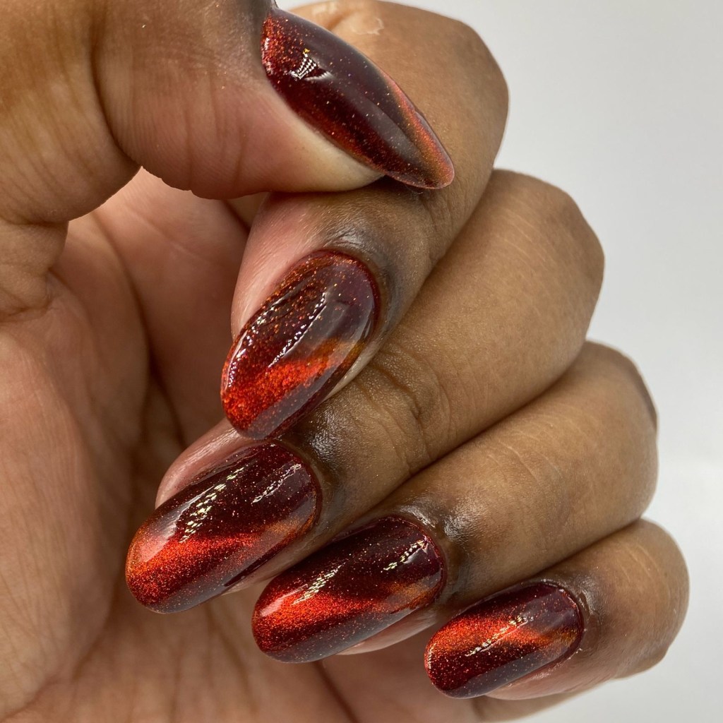 Agora vamos ao Radiant Soul, magnético verde claro com micro flakies vermelho, inspirado na alma cheia de alegria, radiante e contagiante que existe em todos que buscam o bem e o amor, mesmo nos momentos difíceis.